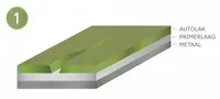Op Afb.1 ziet u een sterk vergrote weergave van een diepe kras in de laklaag van een auto. Diepe krassen die door de primerlaag of tot het metaal ingekrast zijn, vullen wij met dezelfde kleur autolak.